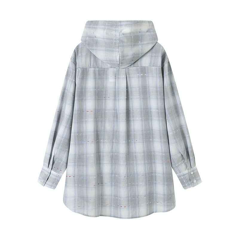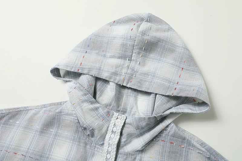 Sunscreen coat loose with a thin plaid shirt